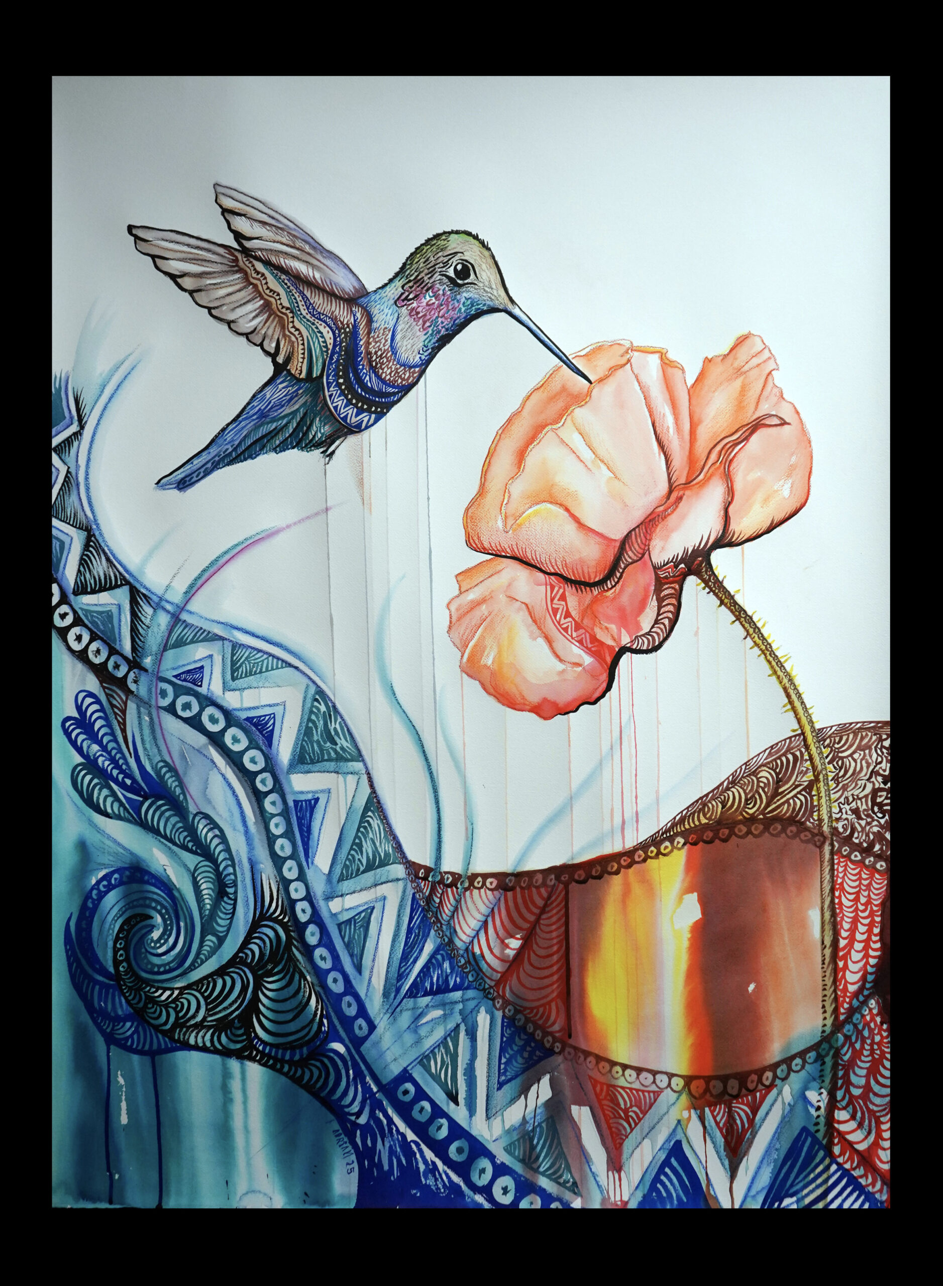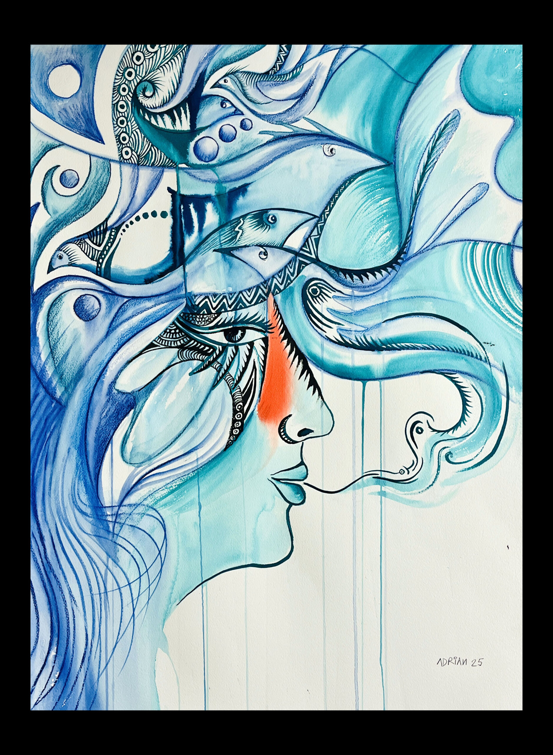 2. The birds that appear when we sing to the trees / Acrylic and watercolor on Fabriano paper / 22 x 30 in / 2025 / Regular price 400 / Art sale 200
