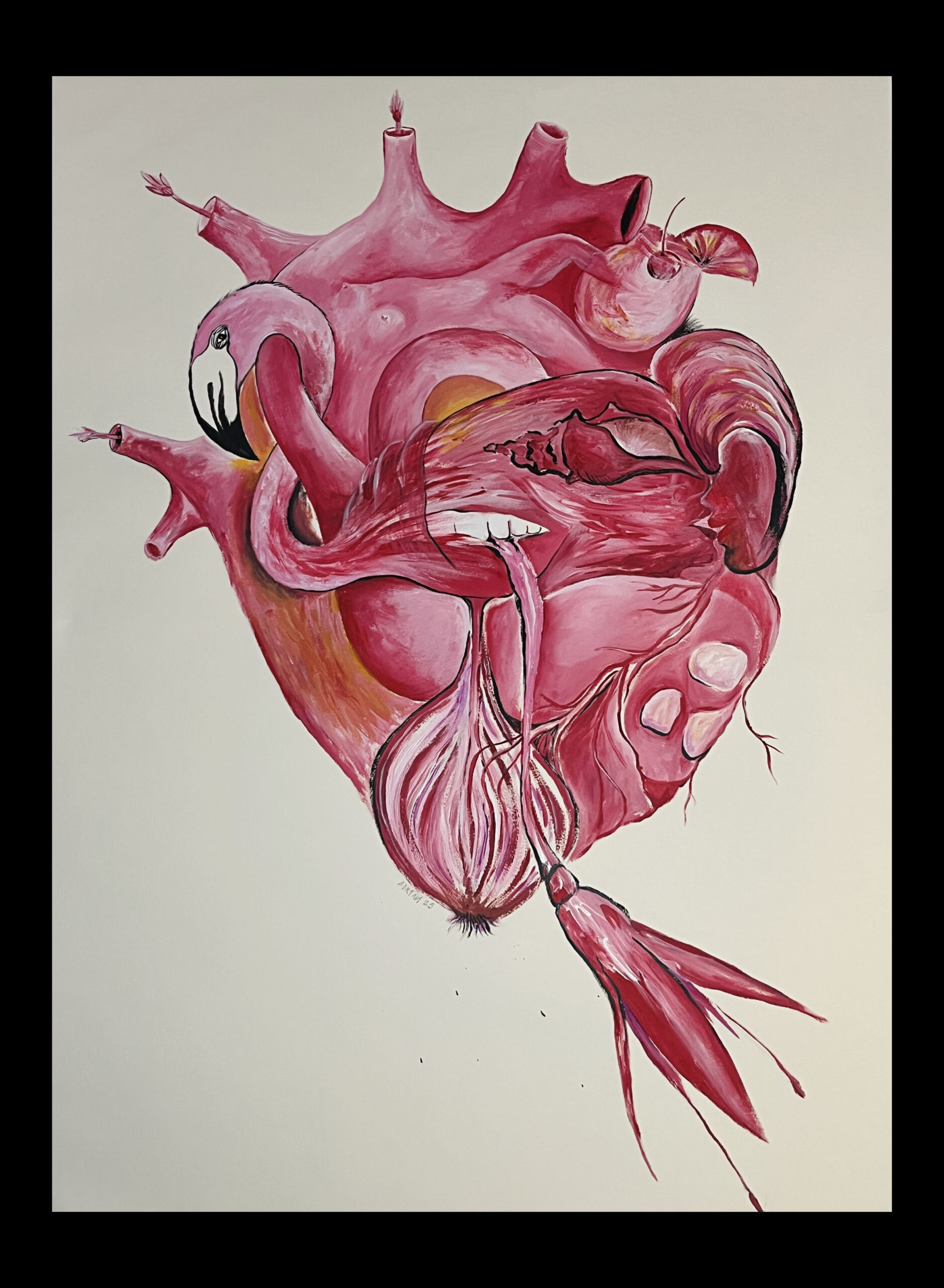 3. Pink Heart (series of monochromatic hearts, created with words by Lindsey Crawford) / Acrylic on Arches paper / 28 x 39 in / 2025 / Regular price 900 / Art Sale 450