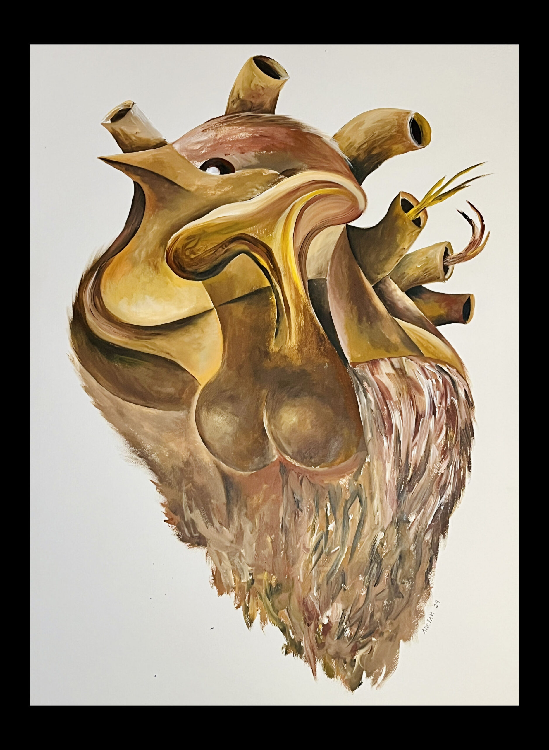 4. Brown Heart (series of monochromatic hearts, created with words by Lindsey Crawford) / Acrylic on Arches paper / 27 x 40 in / 2024 / Regular price 900 / Art Sale 450