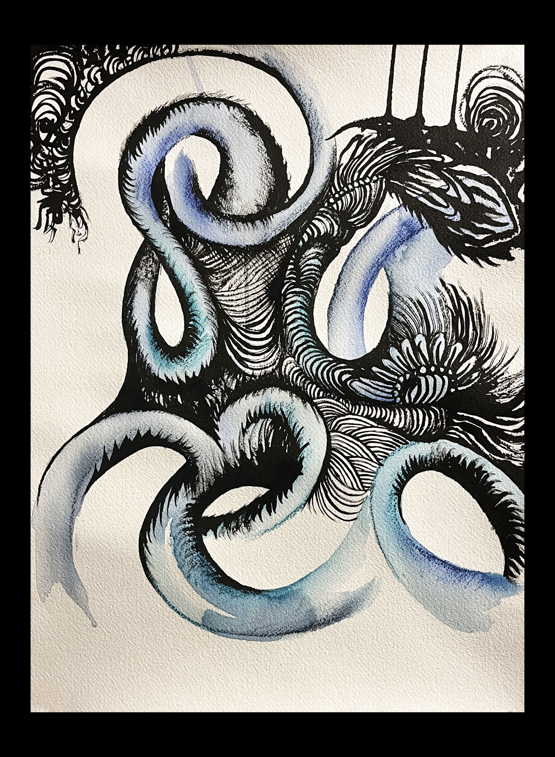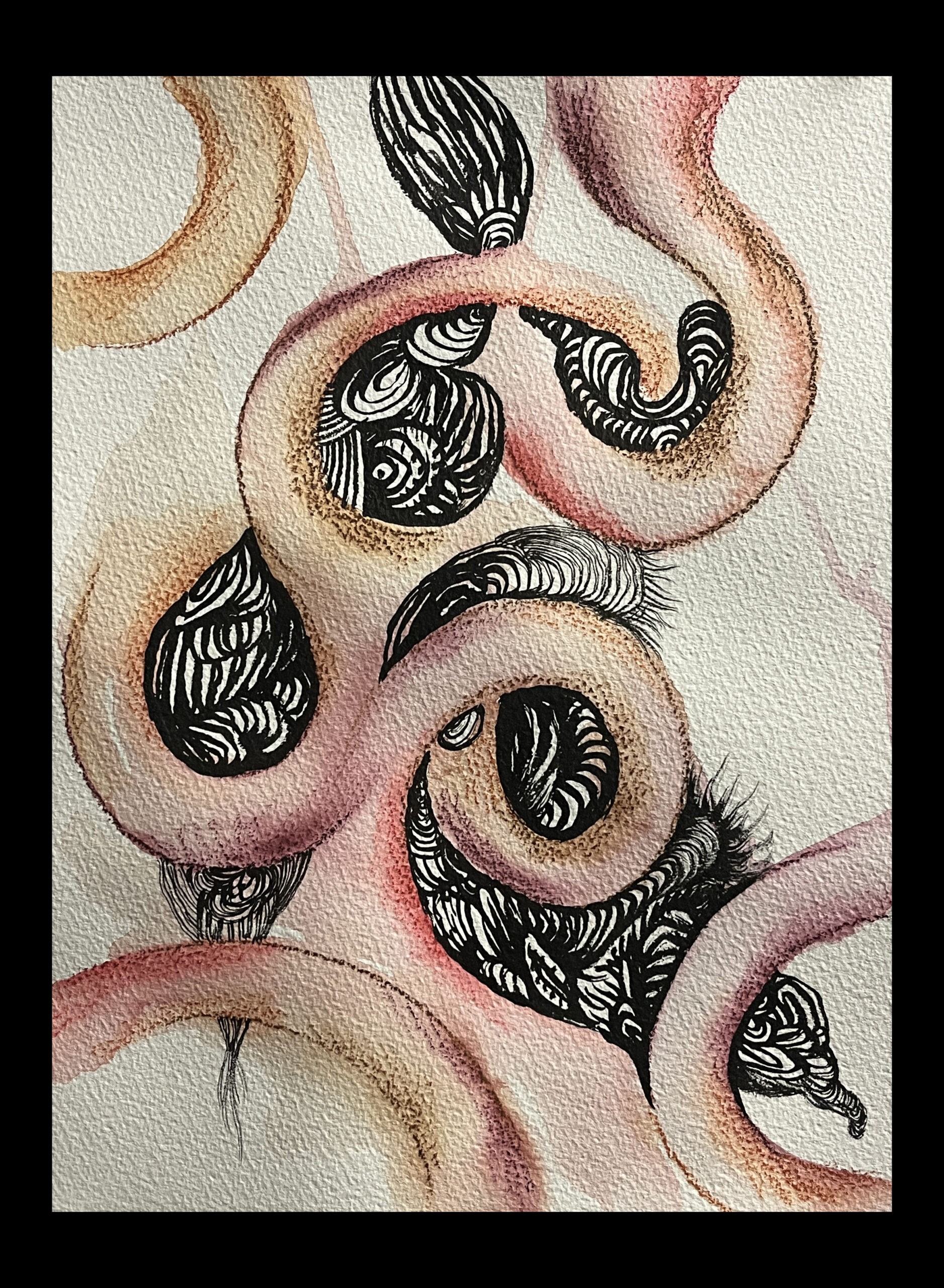 7. Knots 2 / Ink and watercolor on paper / 9 x12 in / 2025 / Regular price 180 / Art Sale 90