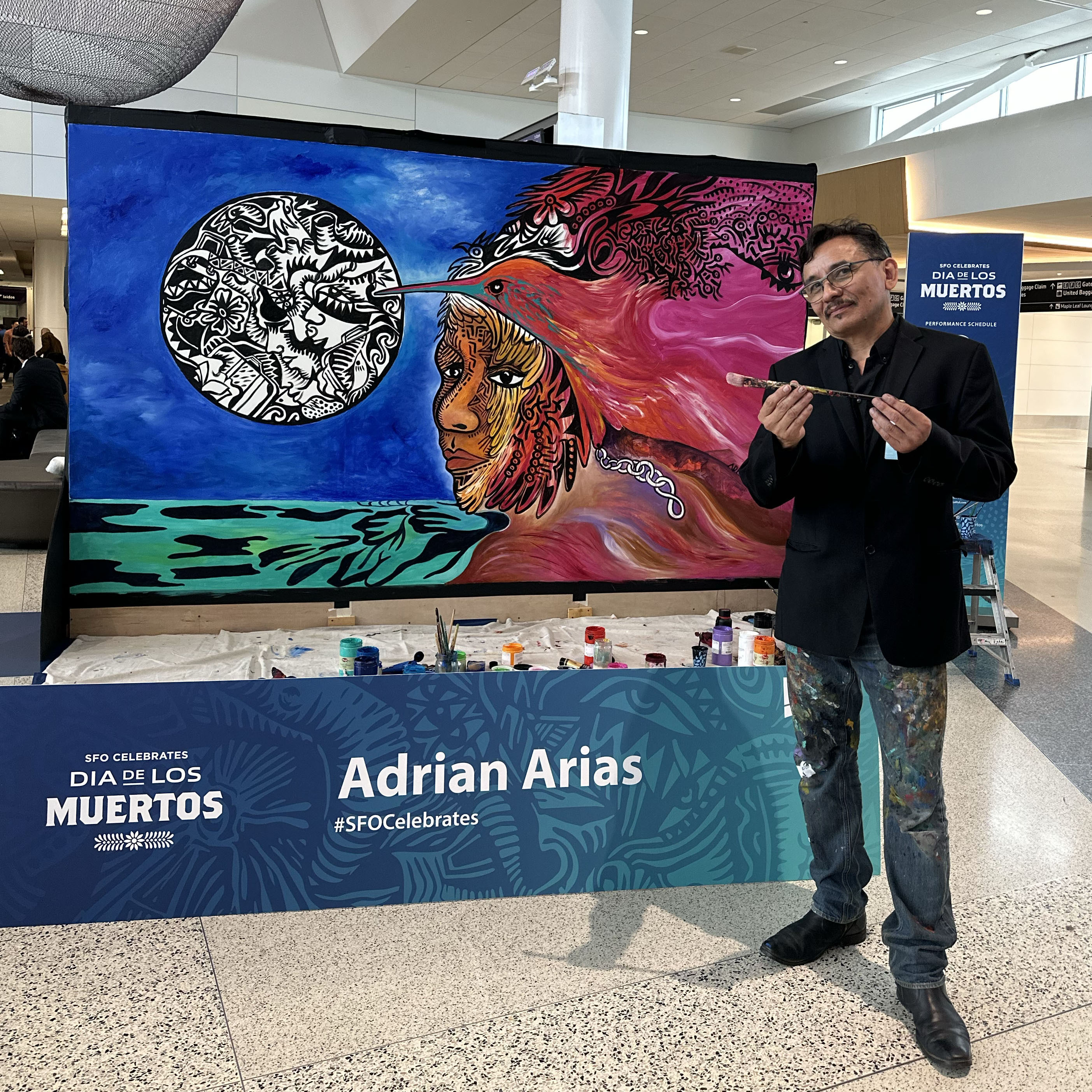 Situated at 447 Minna Street within the Community Arts Stabilization Trust (CAST), this portable mural is a component of Adrian’s ongoing series aimed at bringing visibility to Indigenous Women. Specifically, it highlights Indigenous women from the Americas, Filipino and African diasporas. Originating from his art residency at CAST, Adrian concurrently mentored budding artists from San Francisco’s South of Market neighborhood. Crafted on a triptych canvas for portability, the mural aligns with CAST’s vision of mobility across various community institutions in the Bay Area. Commissioned by CAST, it serves as a dynamic testament to cultural representation and community engagement.